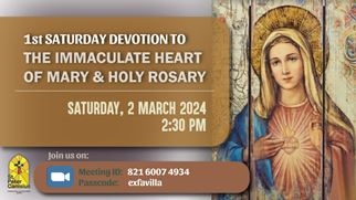 1st Saturday Devotion to The Immaculate Heart of Mary & Holy Rosary - Sat 2 March 2024 2:30PM